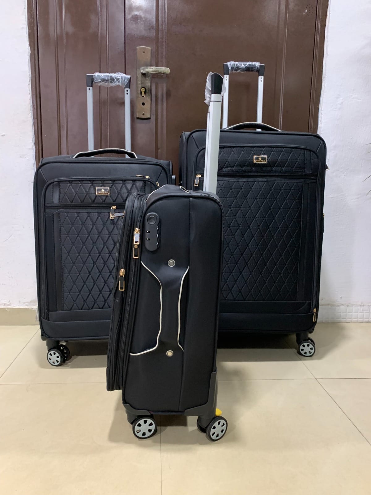 Travel smart and in style with the Swiss Polo 3-Piece Polyester Luggage Set, available at Tramast Nigeria, Ikeja Lagos. Designed with a durable black polyester exterior, this set offers both elegance and practicality for every journey. Each bag features a TSA-approved lock, secure zip closure, and 4-wheel spinner system for smooth mobility. With sizes 28, 24, and 20 inches, it’s the perfect set for vacations, business trips, or family travel.